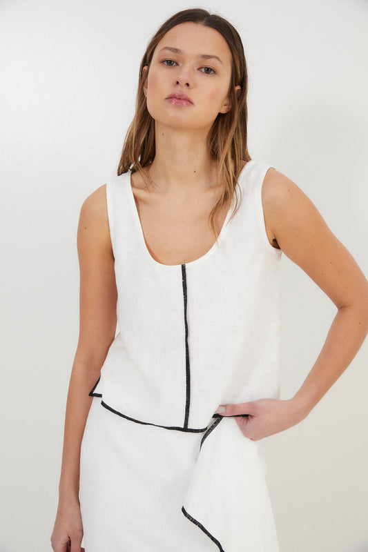 TOTAL LOOK FESTÓN TOP HILO BLANCO