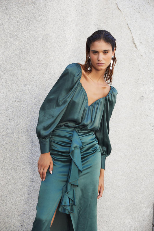 TOTAL LOOK MULS SATÉN ARRUGUILLA COBALTO