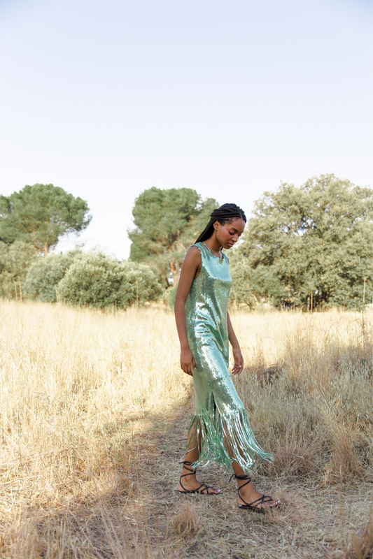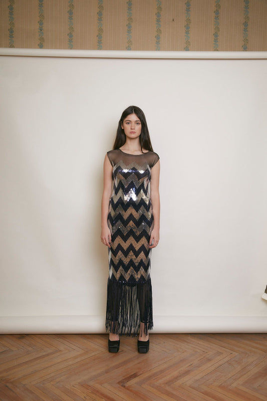 VESTIDO FLECOS LENTEJUELAS ZIGZAG