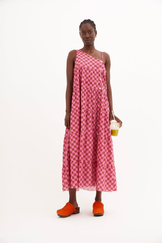 VESTIDO ENVOLVENTE PALMERAS FRESA