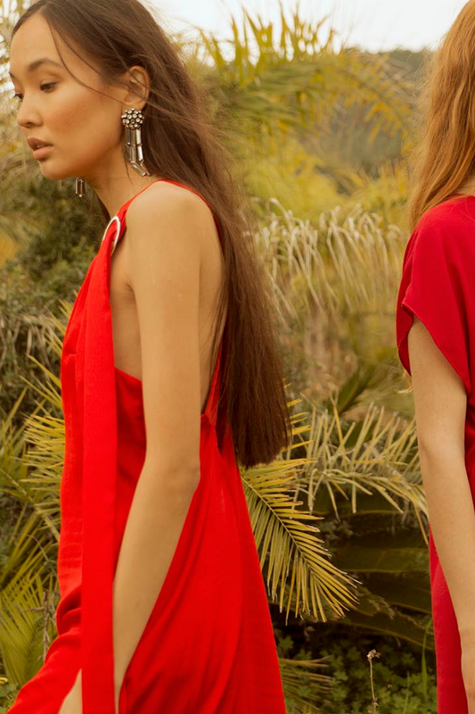 VESTIDO LARGO HEBILLA CLAQUE ROJO
