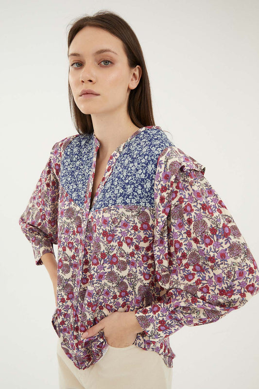 BLUSA FOLK FLOR TRI ESTAMPADO