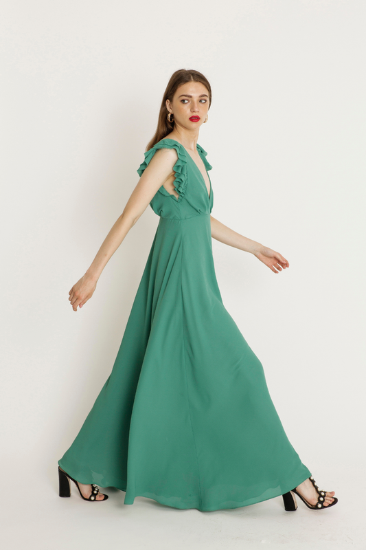 VESTIDO VOLANTE LARGO VERDEPrecio habitual €269,95Precio habitualPrecio unitario por
