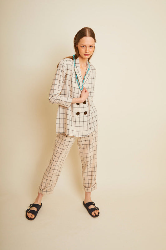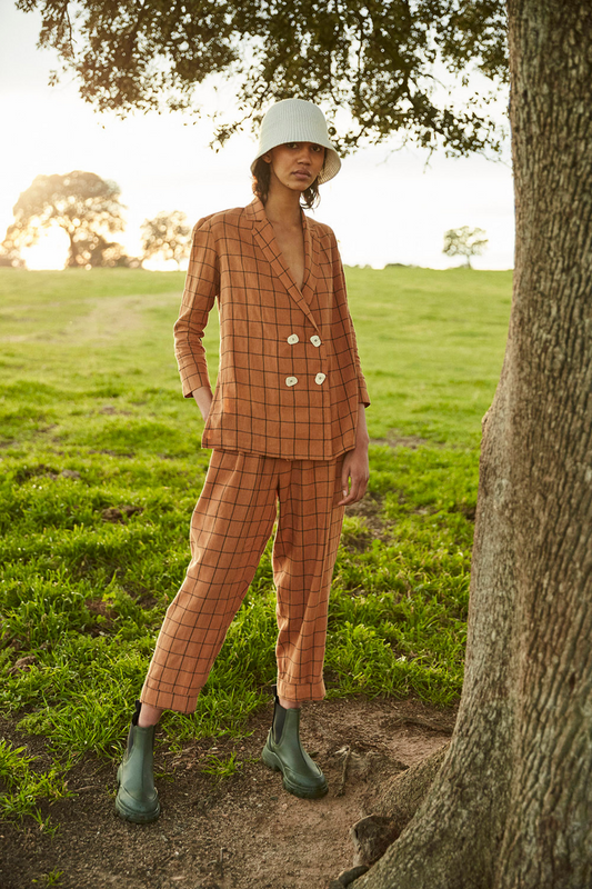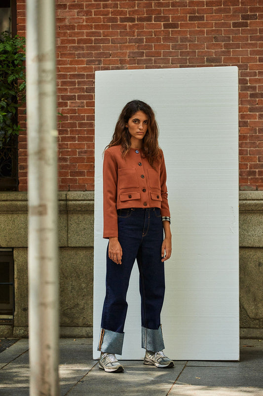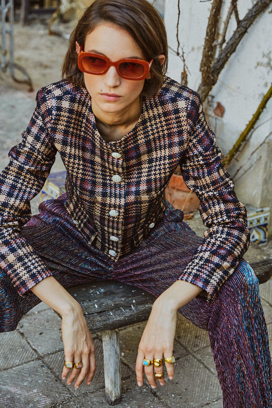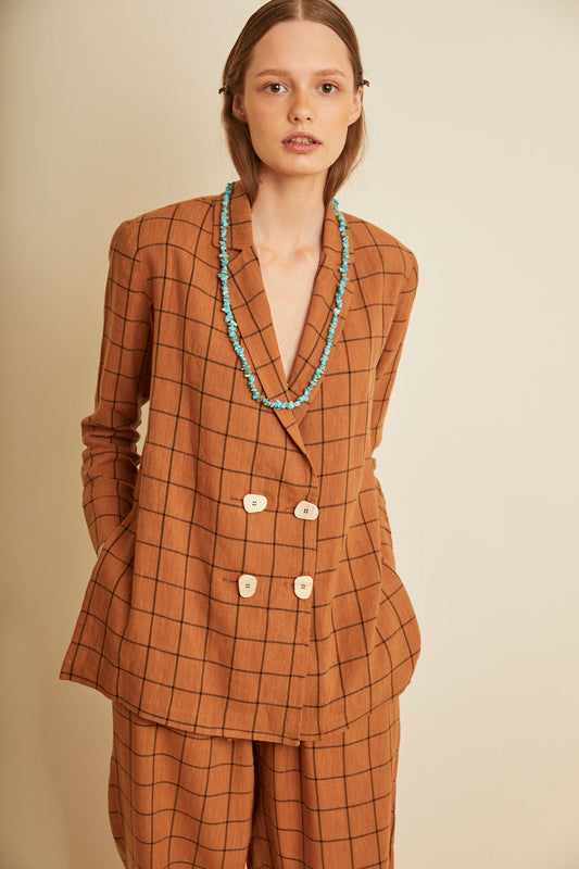CHAQUETA BOTONES CUADRO TEJA - PO