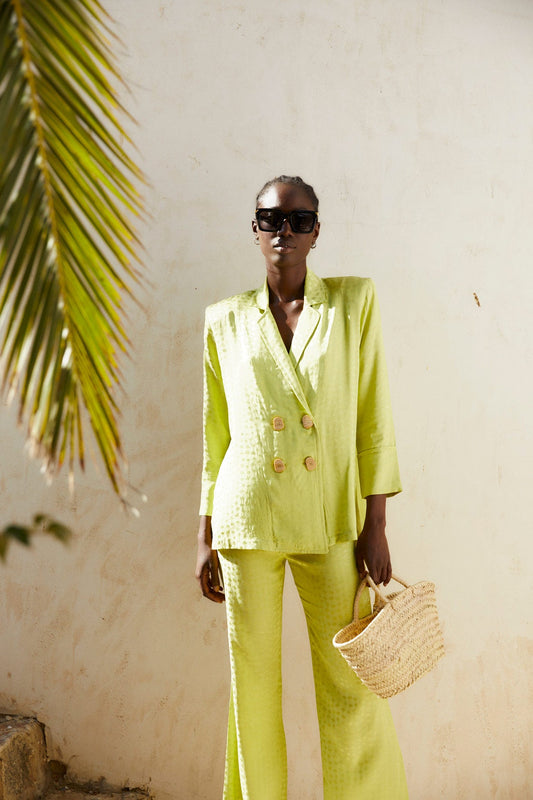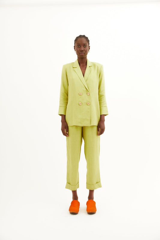 TOTAL LOOK PISTACHIO LINEN BUTTONS