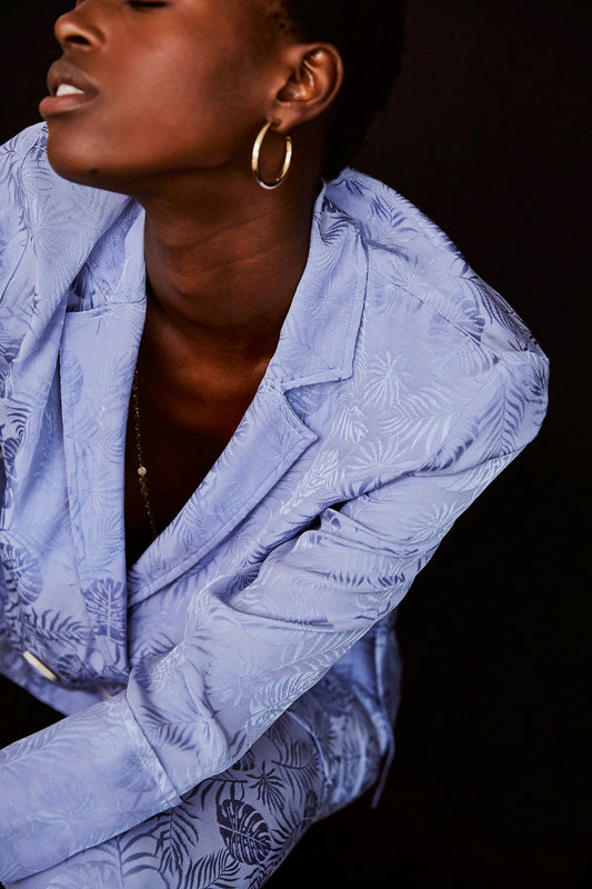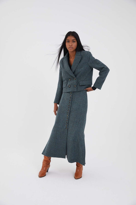 TOTAL LOOK BLUE HERRINGBONE BUTTONS