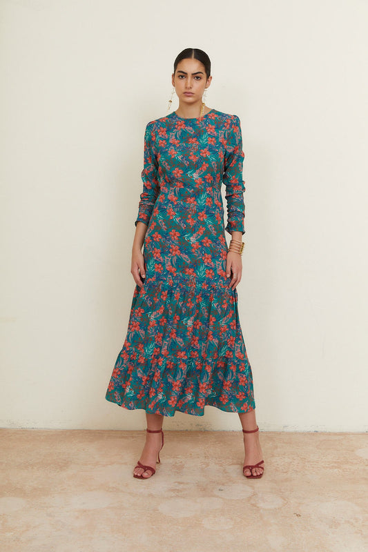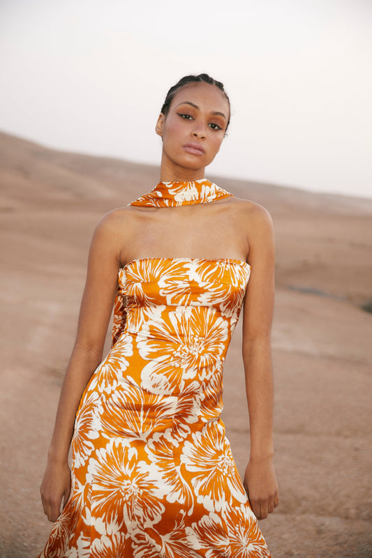 CORINTHIA DRESS WATERCOLOR FLOWER PUMPKIN