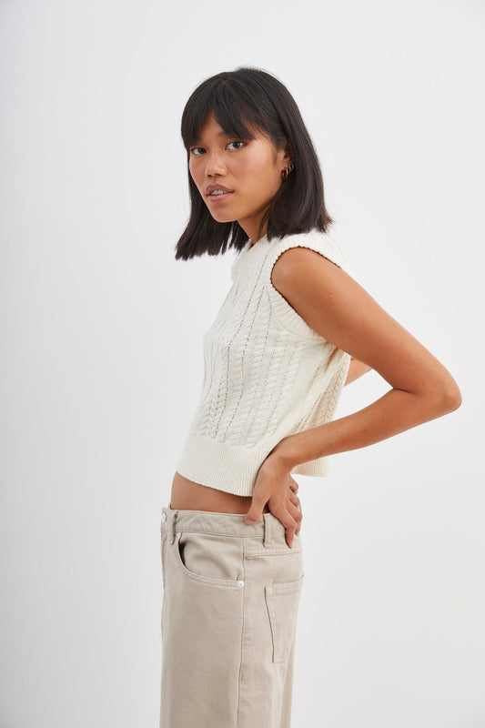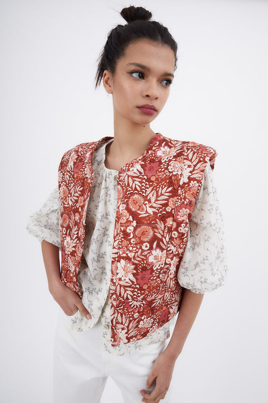 SHORT ECRU FLOWER VEST
