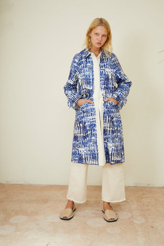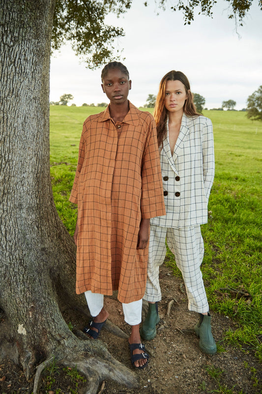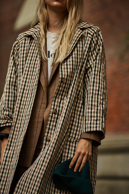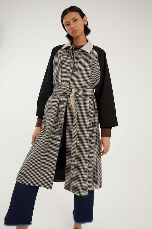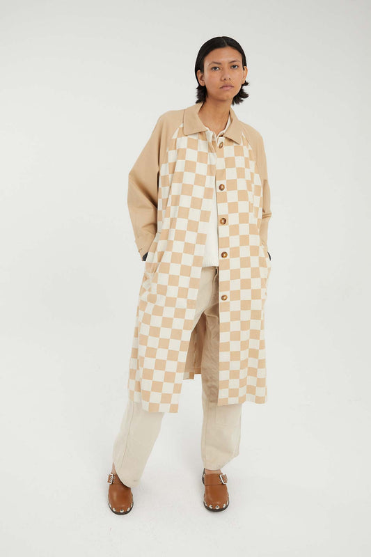 BEIGE CHECKER OVER MIX TRENCH COAT