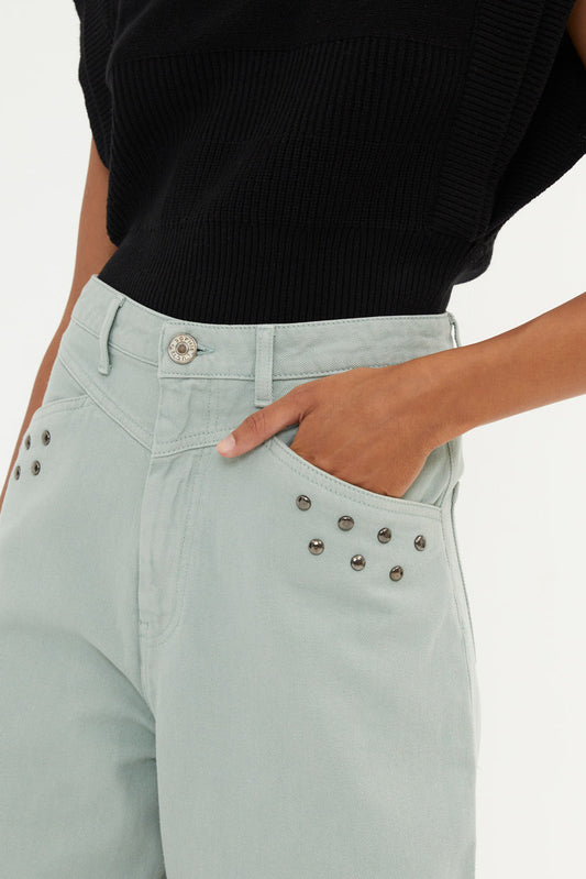 LUCCI GRAY STUDDED JEANS BLEACH