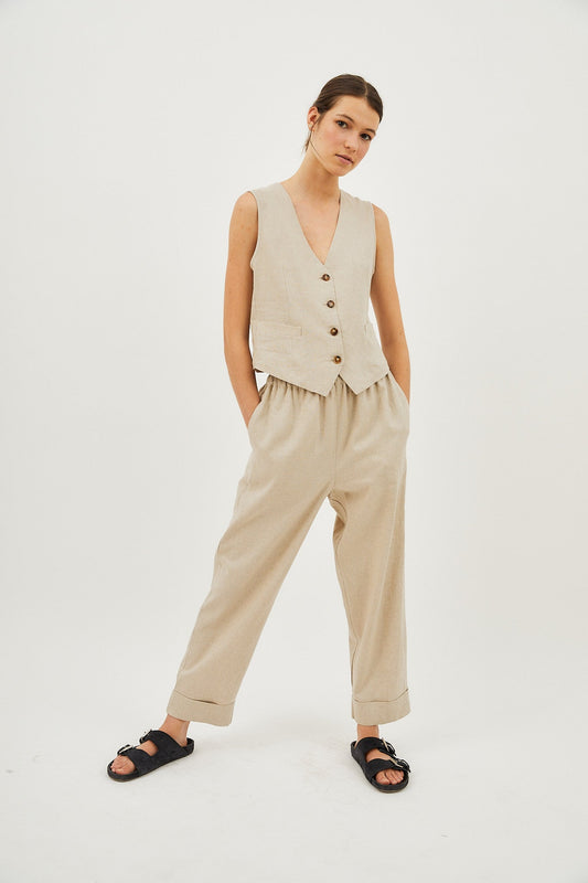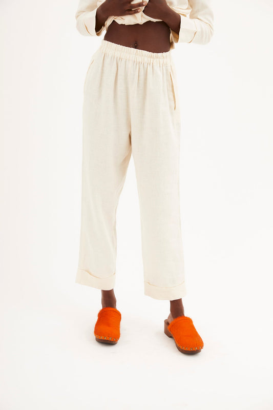 NATURAL LINEN STRIPE SUSAN PANTS