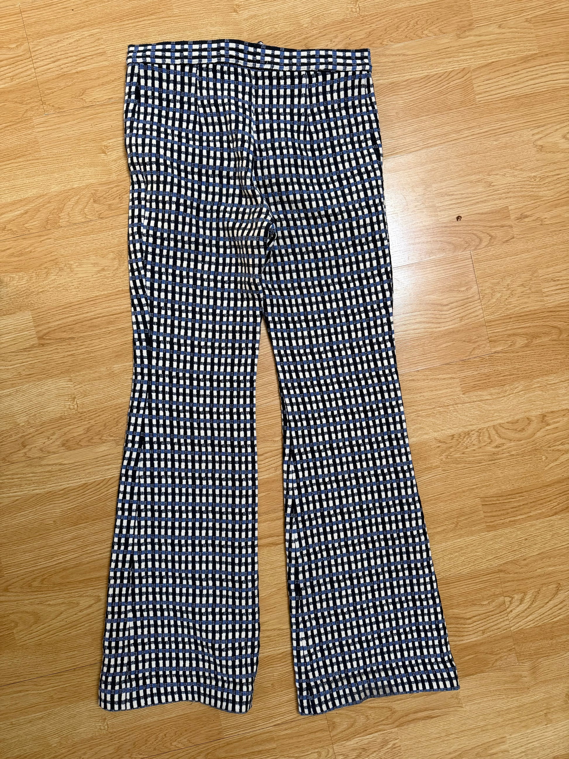 Elevate your style with these flare pants, made from a comfortable, stretchy fabric featuring a geometric print that evokes retro elegance. Their flattering cut enhances your silhouette, perfect for a casual chic look or a special night out. Pair them with your favorite blouses and showcase a unique, sophisticated style.