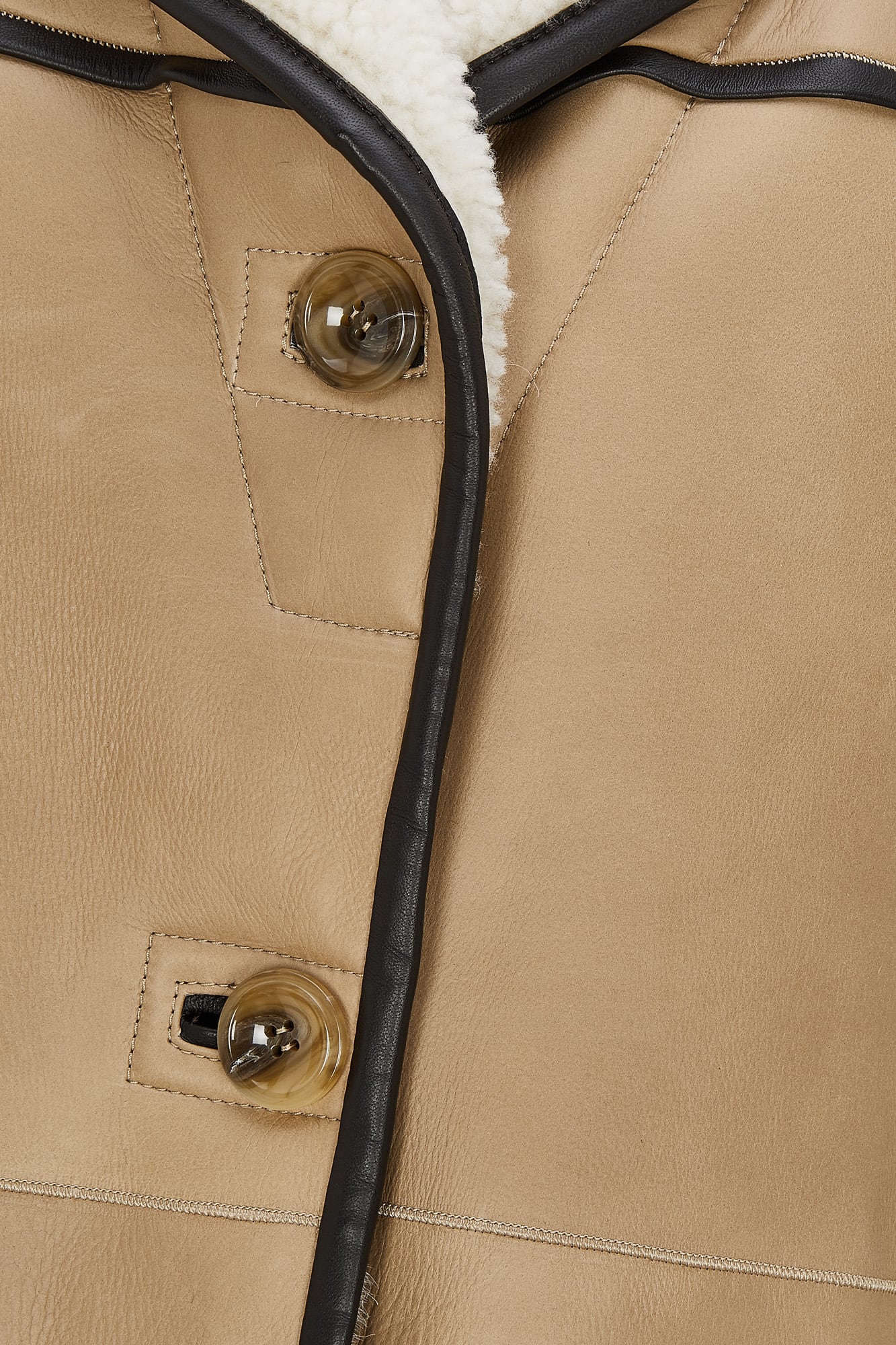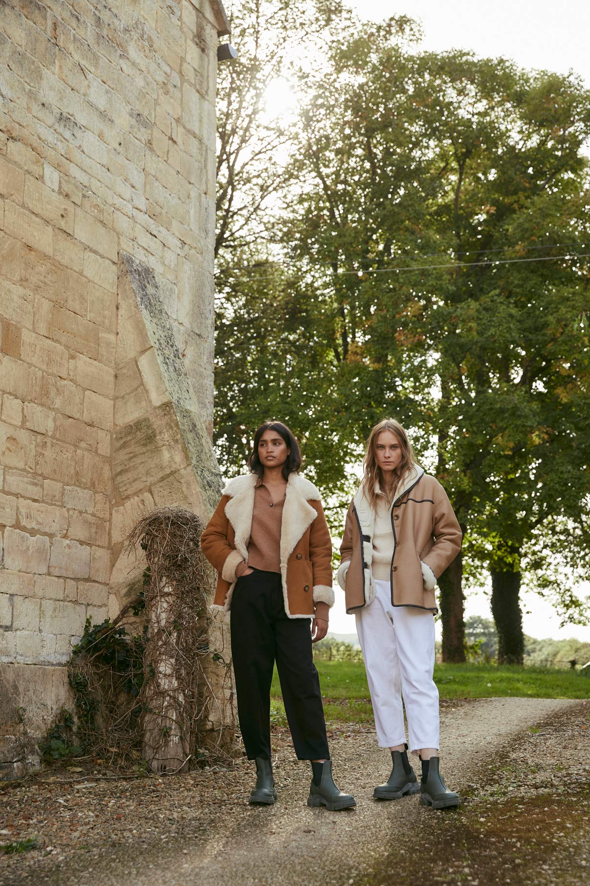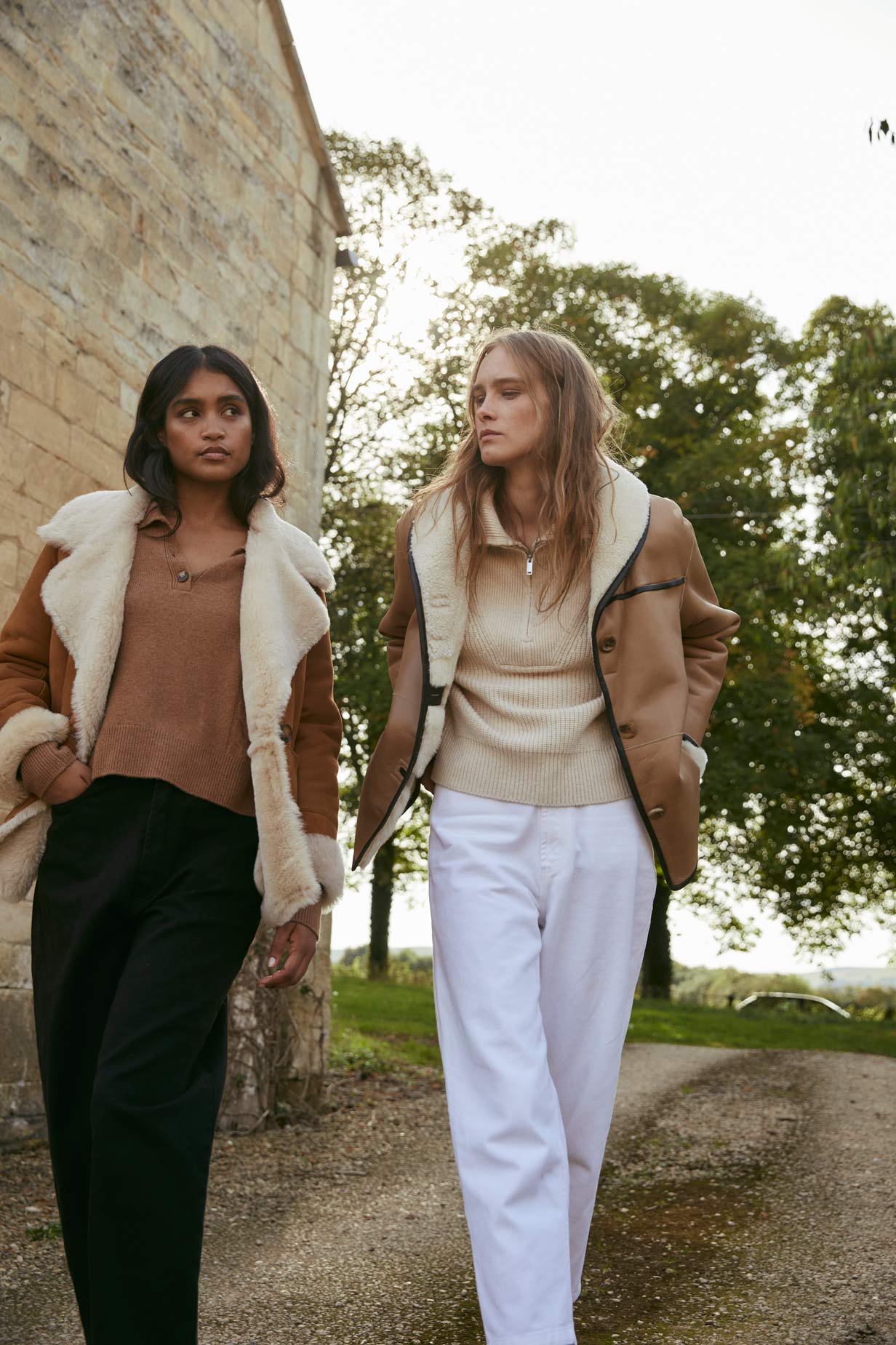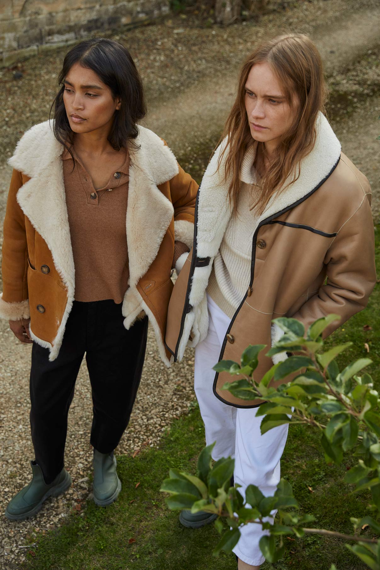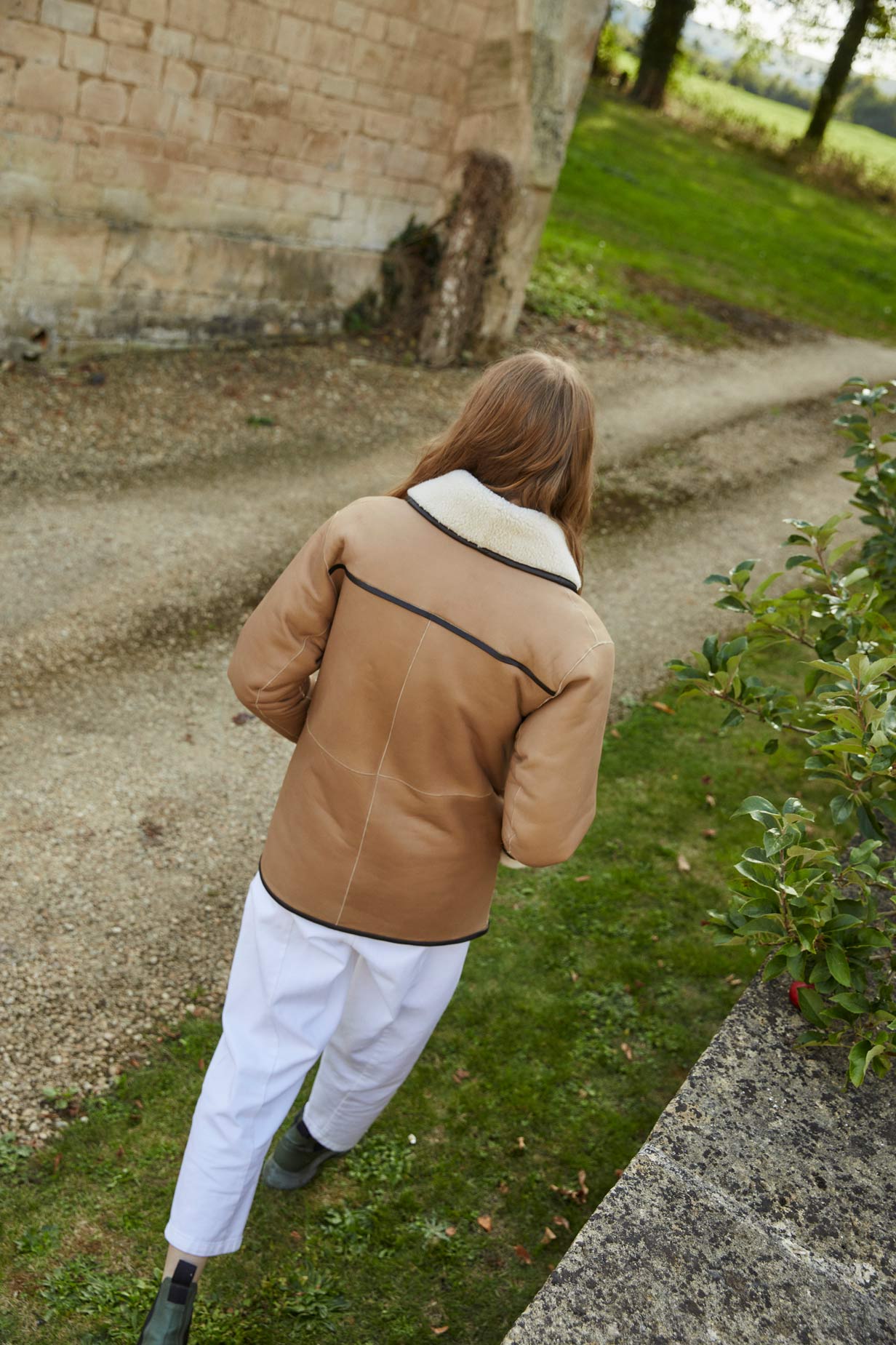 Este invierno apostamos por la artesanía española y apostamos por prendas de 100% cordero español. Abrigo de piel de cordero con pelo por dentro, largo 3/4 con ribetes en piel a contraste en tono marrón. Cierre con botones en el delantero.