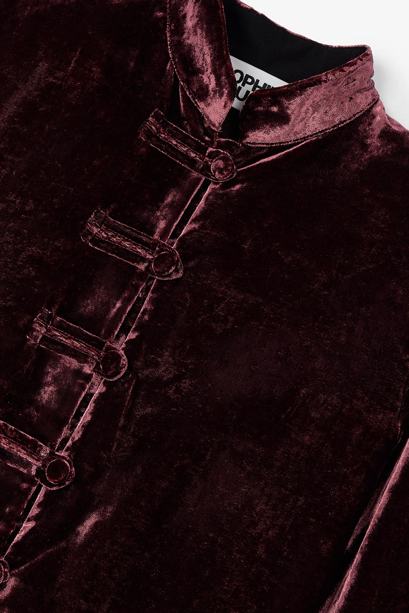 Esta temporada os traemos el abrigo perfecto para vuestros eventos. Abrigo midi en terciopelo y raso de color vino. Cuello mao, botonadura frontal hasta la cintura y aberturas laterales para dar movimiento.