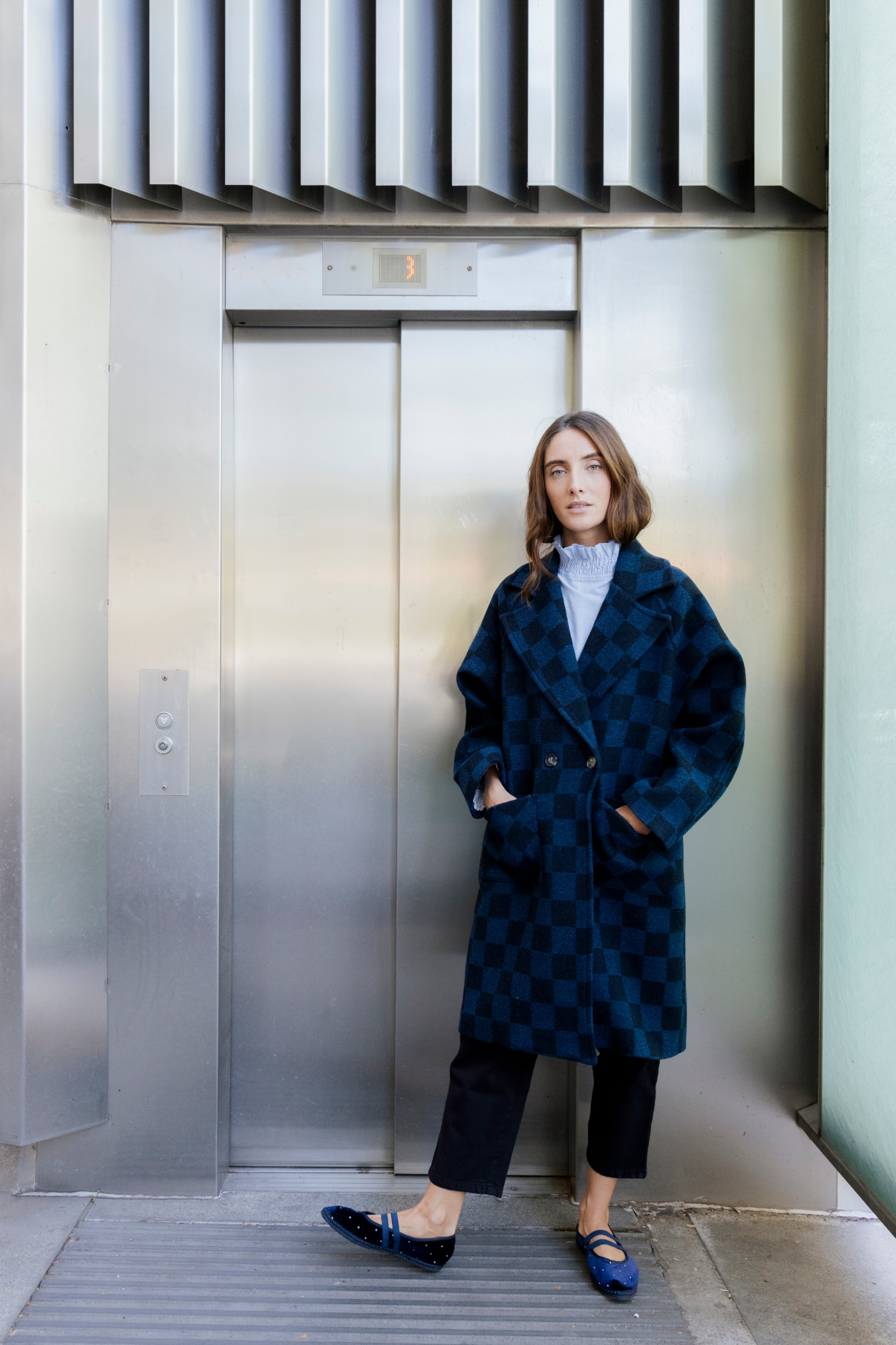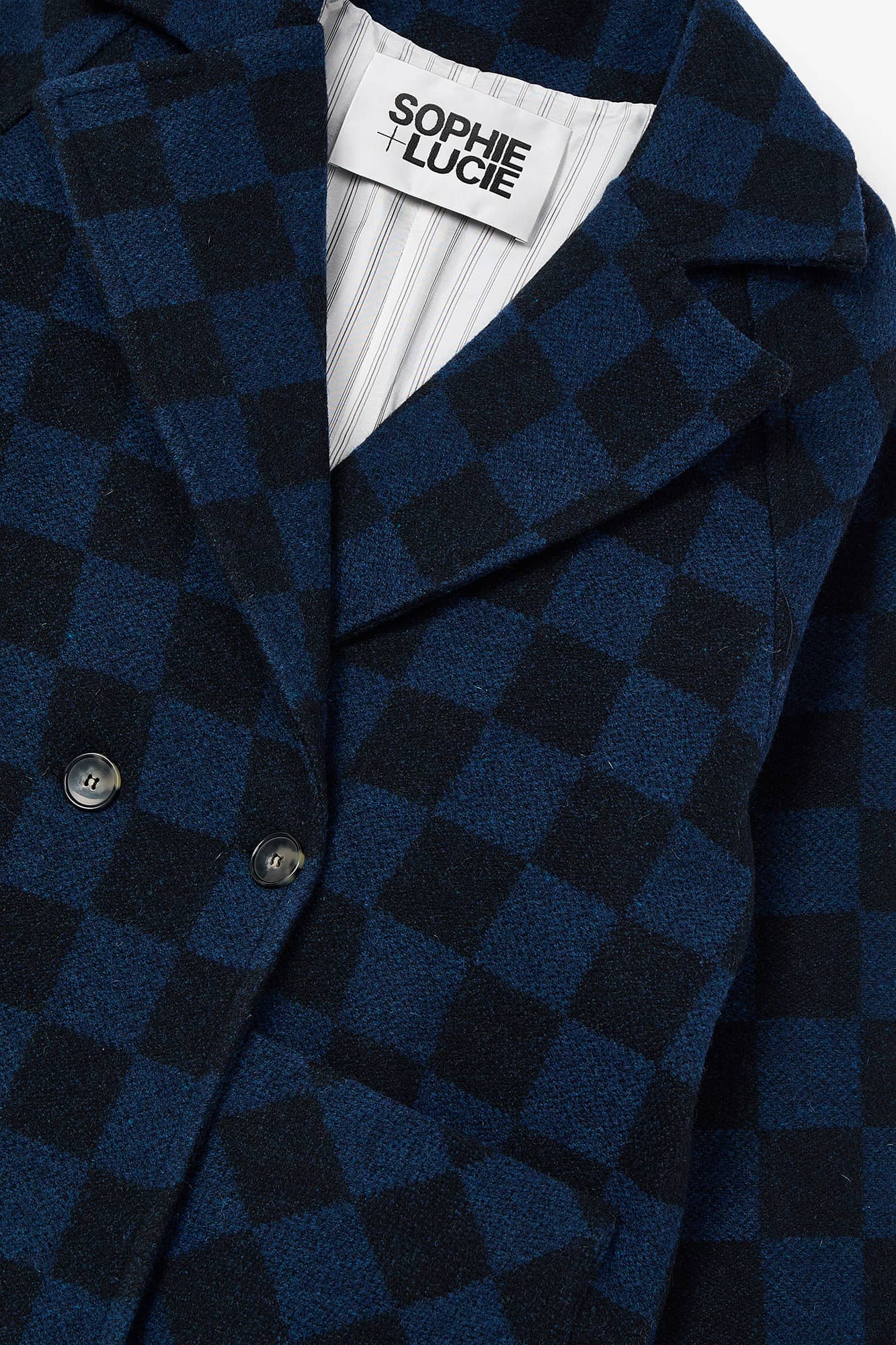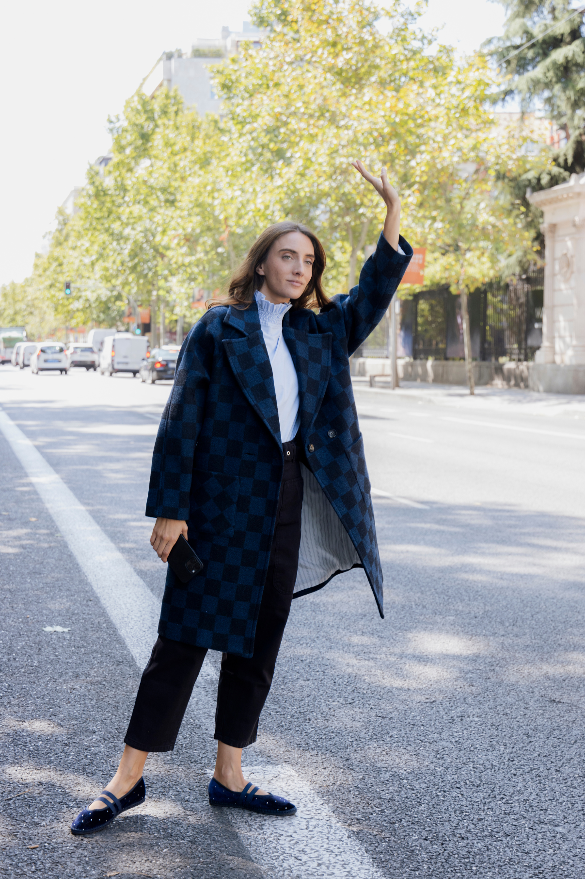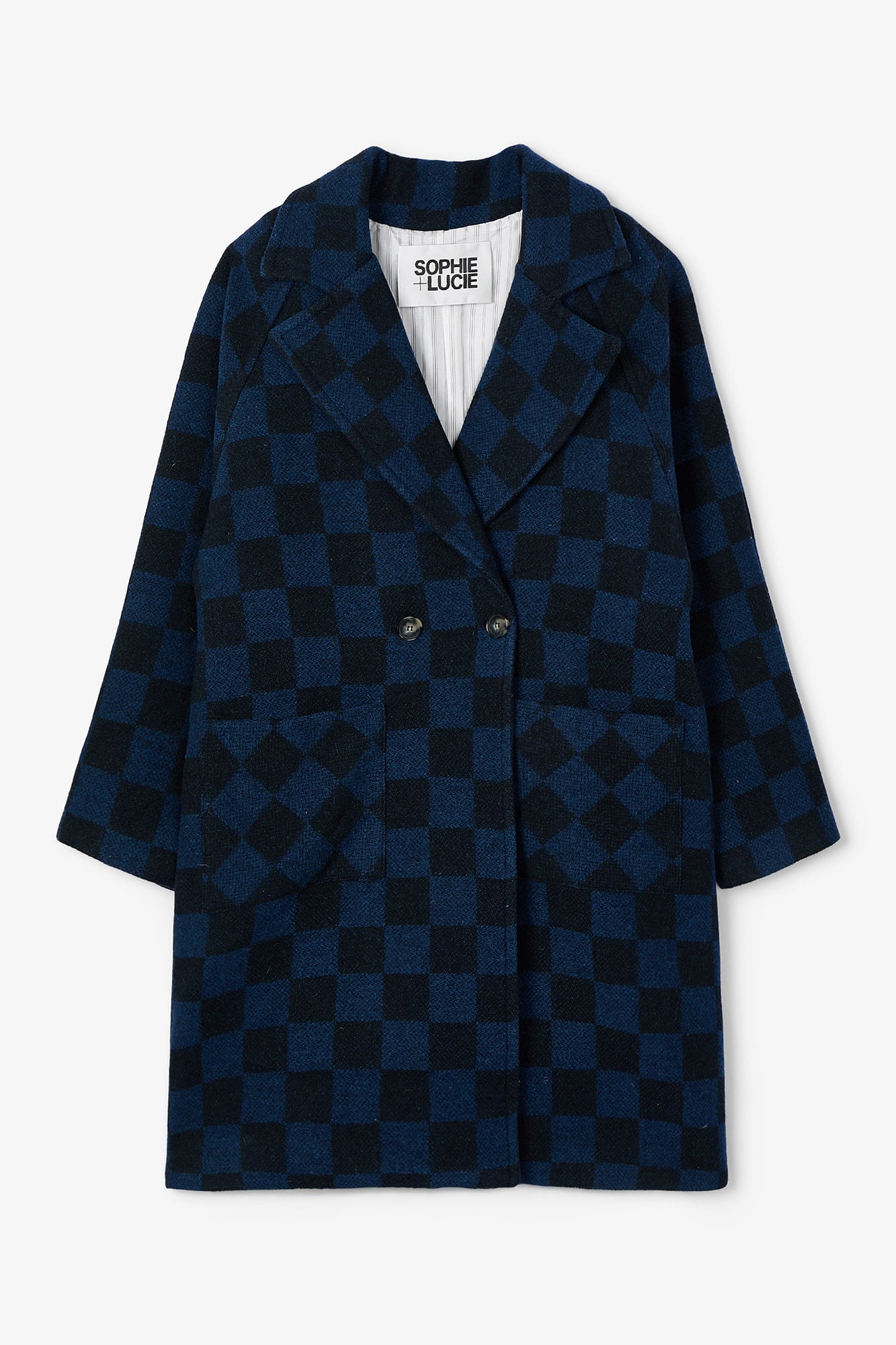 Abrigo oversize en tejido estampado de cuadros. Bolsillos en los laterales. Cierre cruzado con dos botones carey en el frontal.