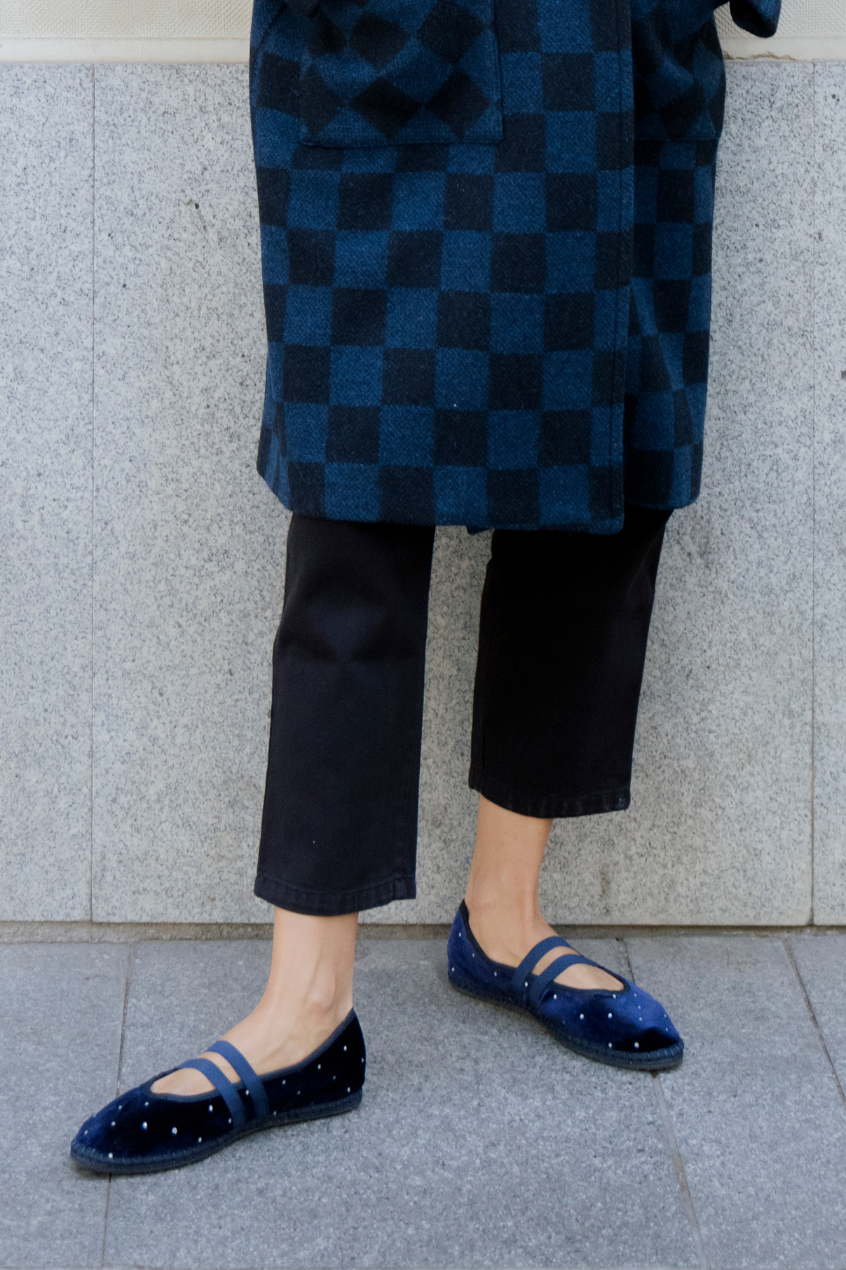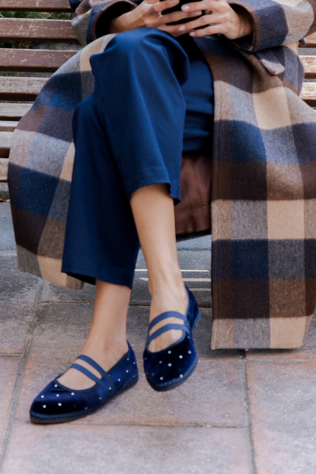 El exterior del zapato es 100% terciopelo de algodón y el interior es 100% algodón orgánico con tratamiento antibacteriano. La suela está hecha de caucho producido a partir de neumáticos de bicicleta reciclados.