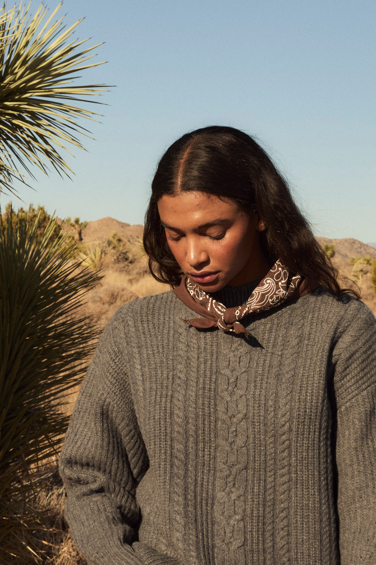 Pañuelo confeccionado en algodón inspirado en el oeste. ¡Llévalo alrededor del cuello o en la cintura para darle un toque west a tus looks!