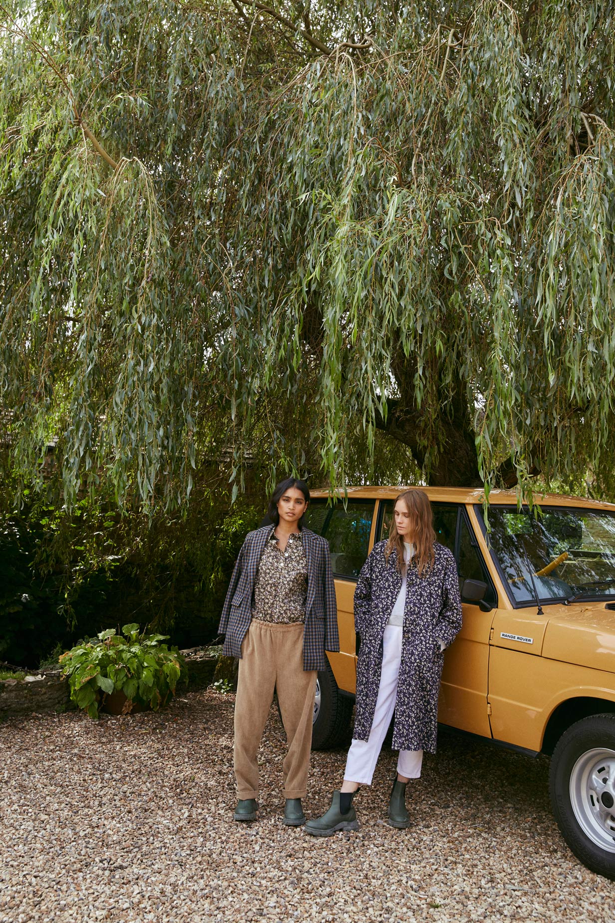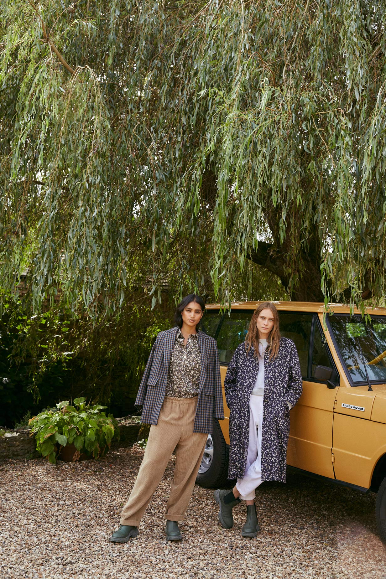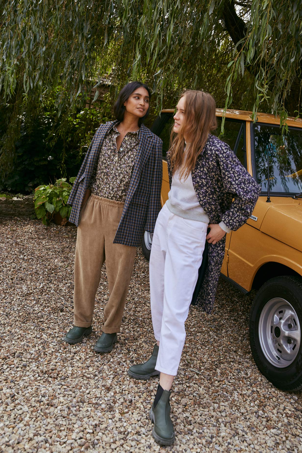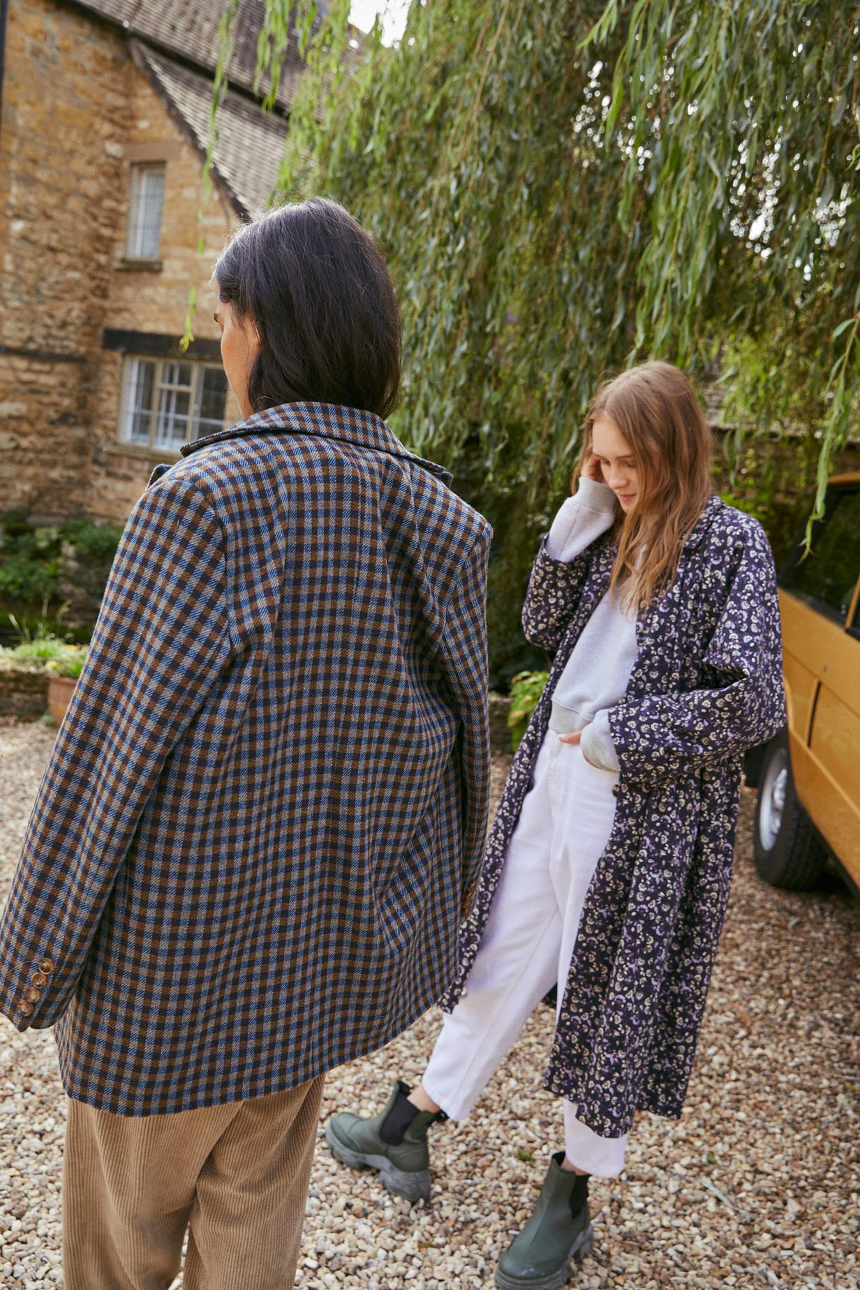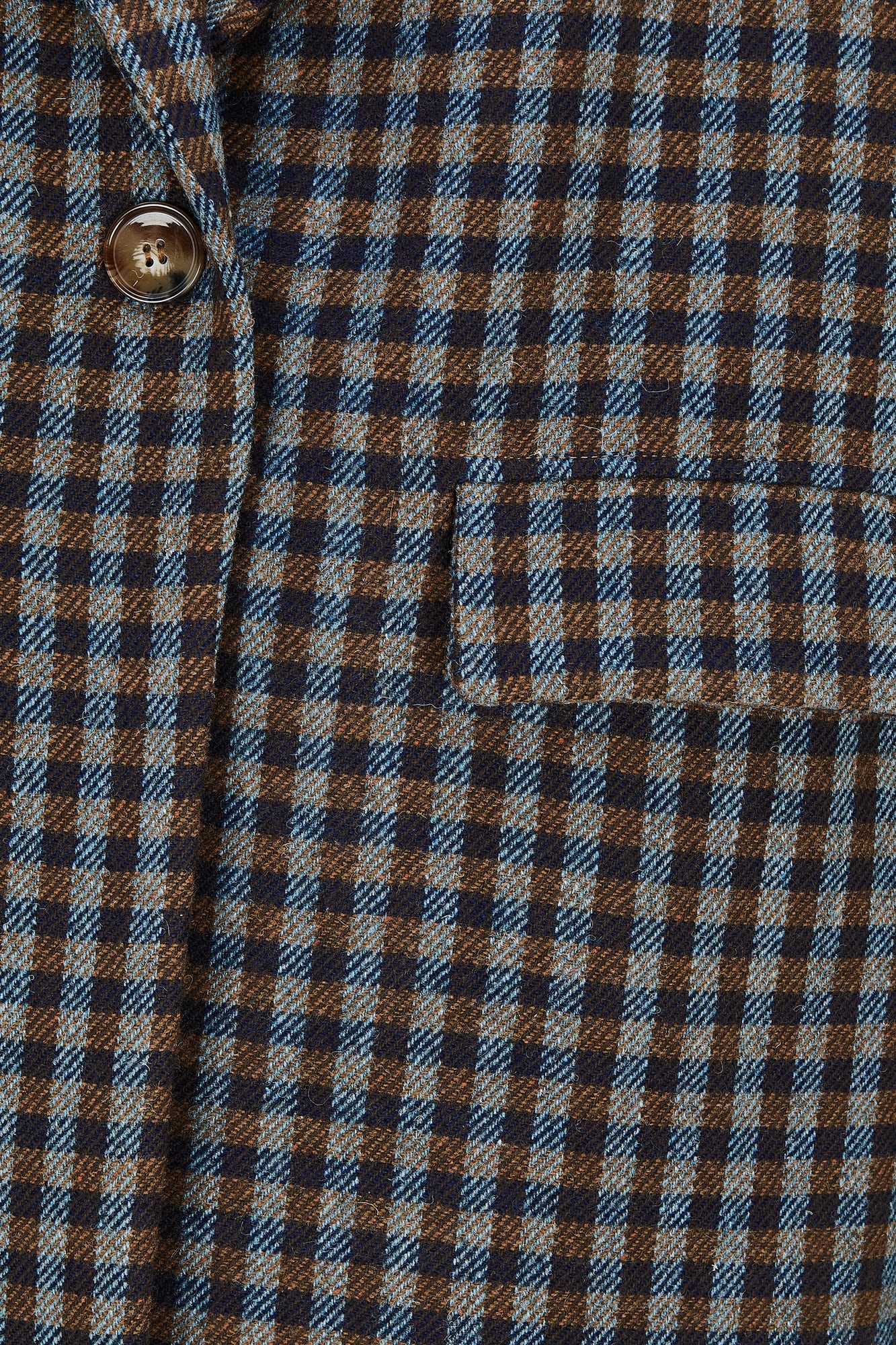 Blazer confeccionada en cuadros de fit oversize con manga larga y hombro marcado. Bolsillos de vivo con solapa en el delantero. Solapa larga y cierre delantero con un solo botón.