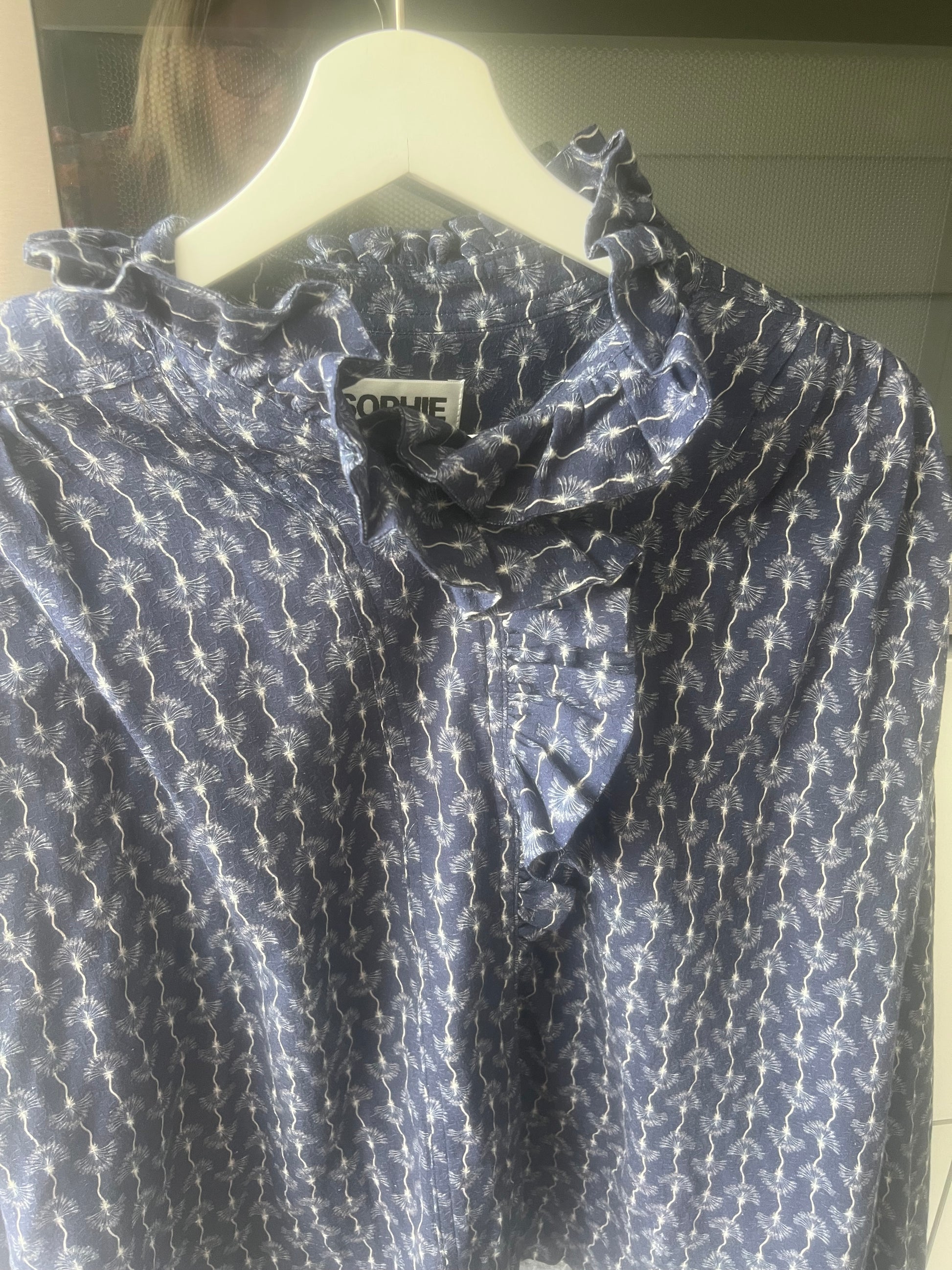 Descubre la blusa Sophie & Lucie, una prenda fluida y femenina en tonos azul noche con sutiles detalles estampados. Su corte favorecedor y el delicado volante en el cuello aportan un toque romántico a tu estilo. Perfecta para combinar con tus jeans favoritos o una falda elegante, te acompañará con sofisticación en cualquier ocasión. Fabricada en un tejido suave, ofrece comodidad y libertad de movimiento.