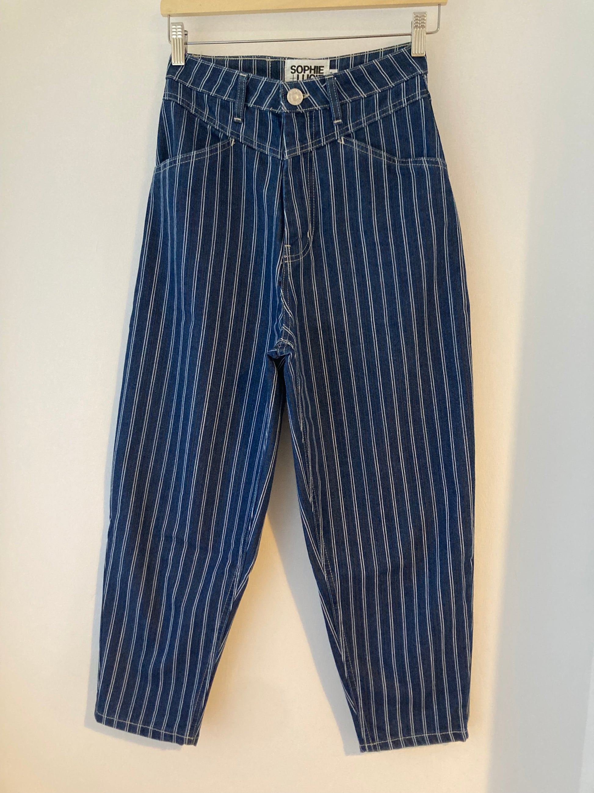 Atrévete a destacar con este pantalón vaquero de diseño único. El corte holgado y las delicadas rayas verticales estilizan la figura y aportan un toque fresco y original. Fabricado en algodón resistente y cómodo, este pantalón es perfecto para crear looks casuales y modernos, desde una tarde de compras hasta una cena con amigas. Combínalo con tus prendas favoritas y expresa tu personalidad con estilo.