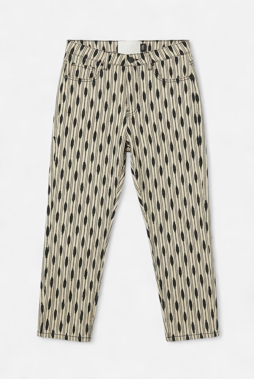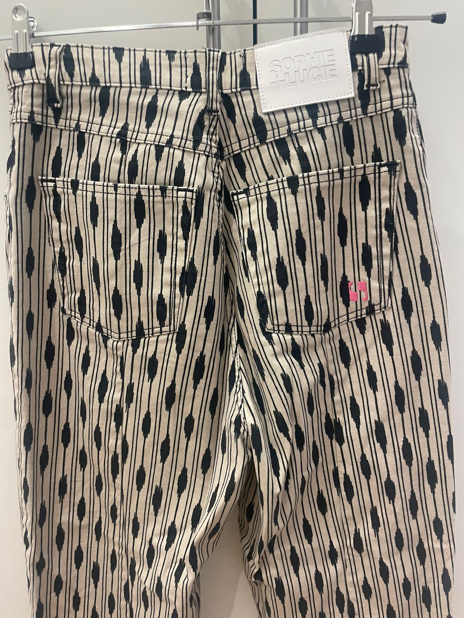 Estos vaqueros de algodón de Sophie + Lucie te aportan un toque boho-chic. Su diseño con estampado de motivos geométricos en blanco y negro realza tu figura gracias a un corte favorecedor. Son ideales para un look casual con un toque original. Combínalos con una camiseta básica y unas sandalias para un estilo veraniego sin complicaciones.