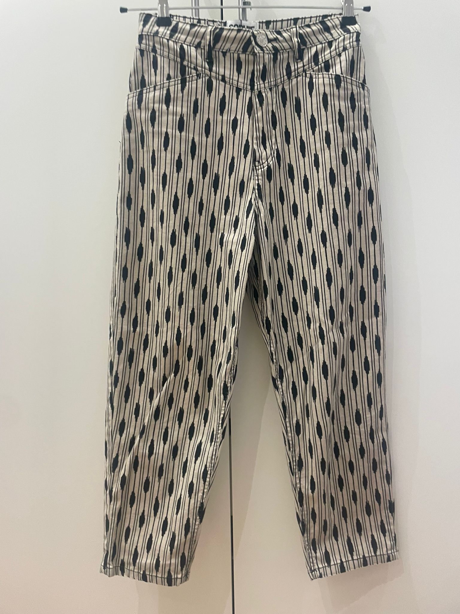 jean tobillerro blanco con motivos azul marino talla 36 puesto 2 horas