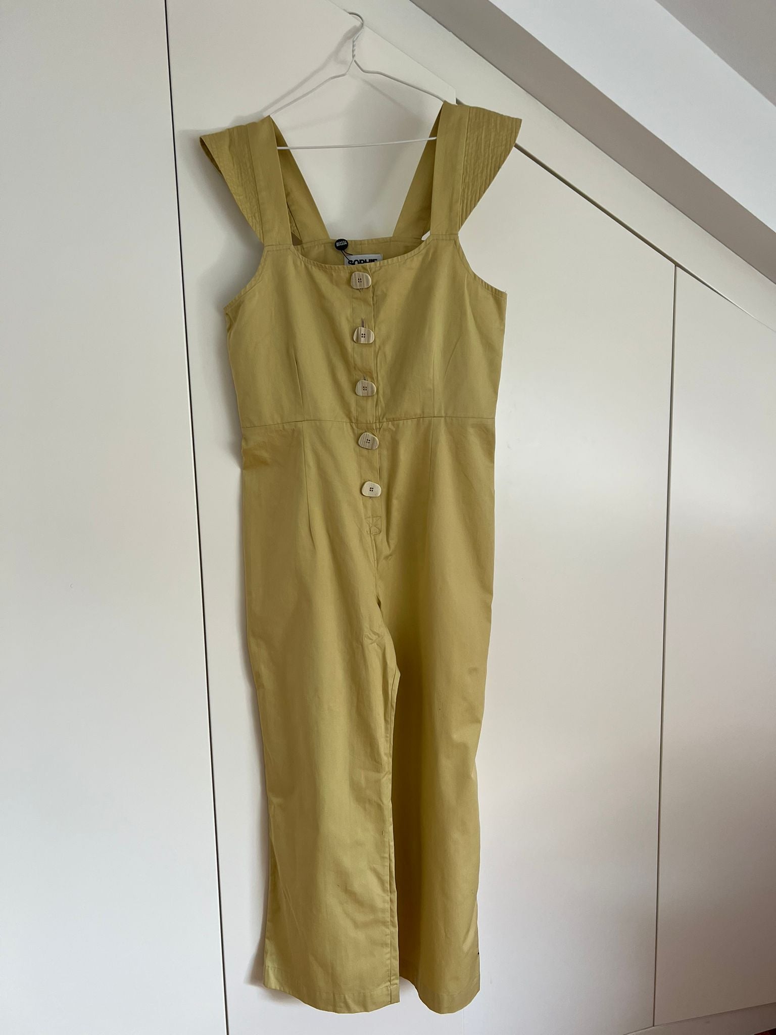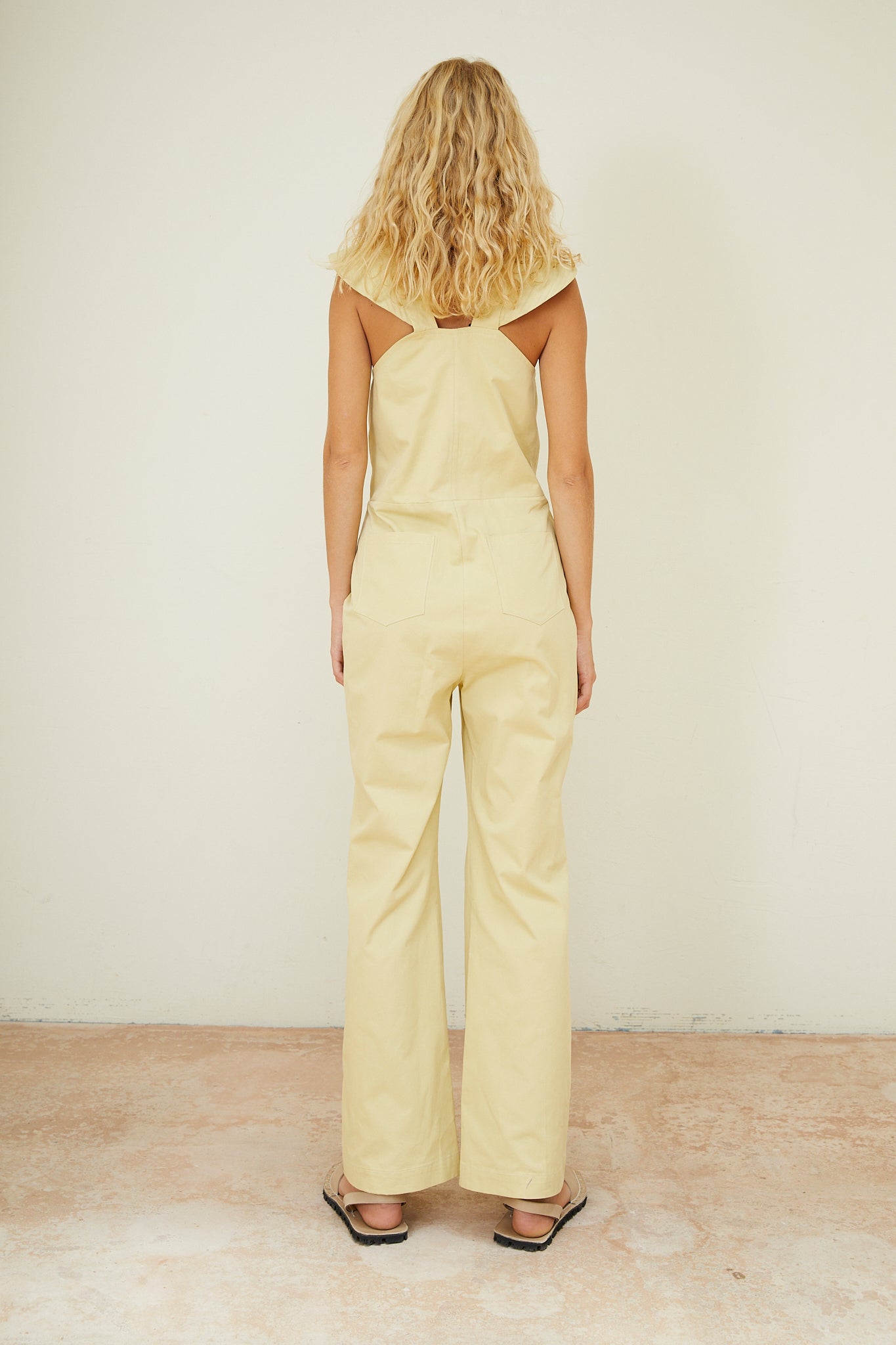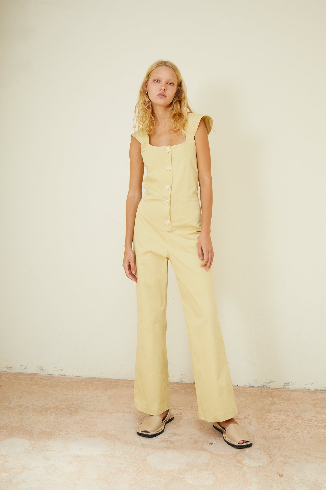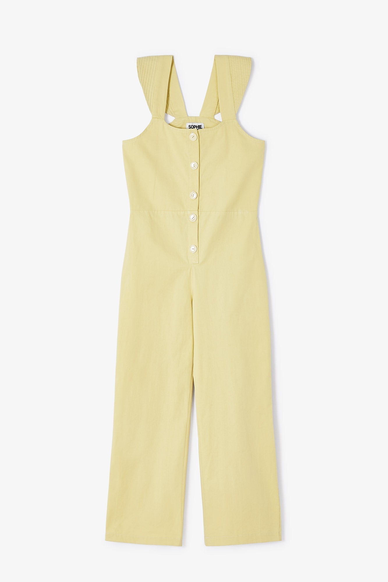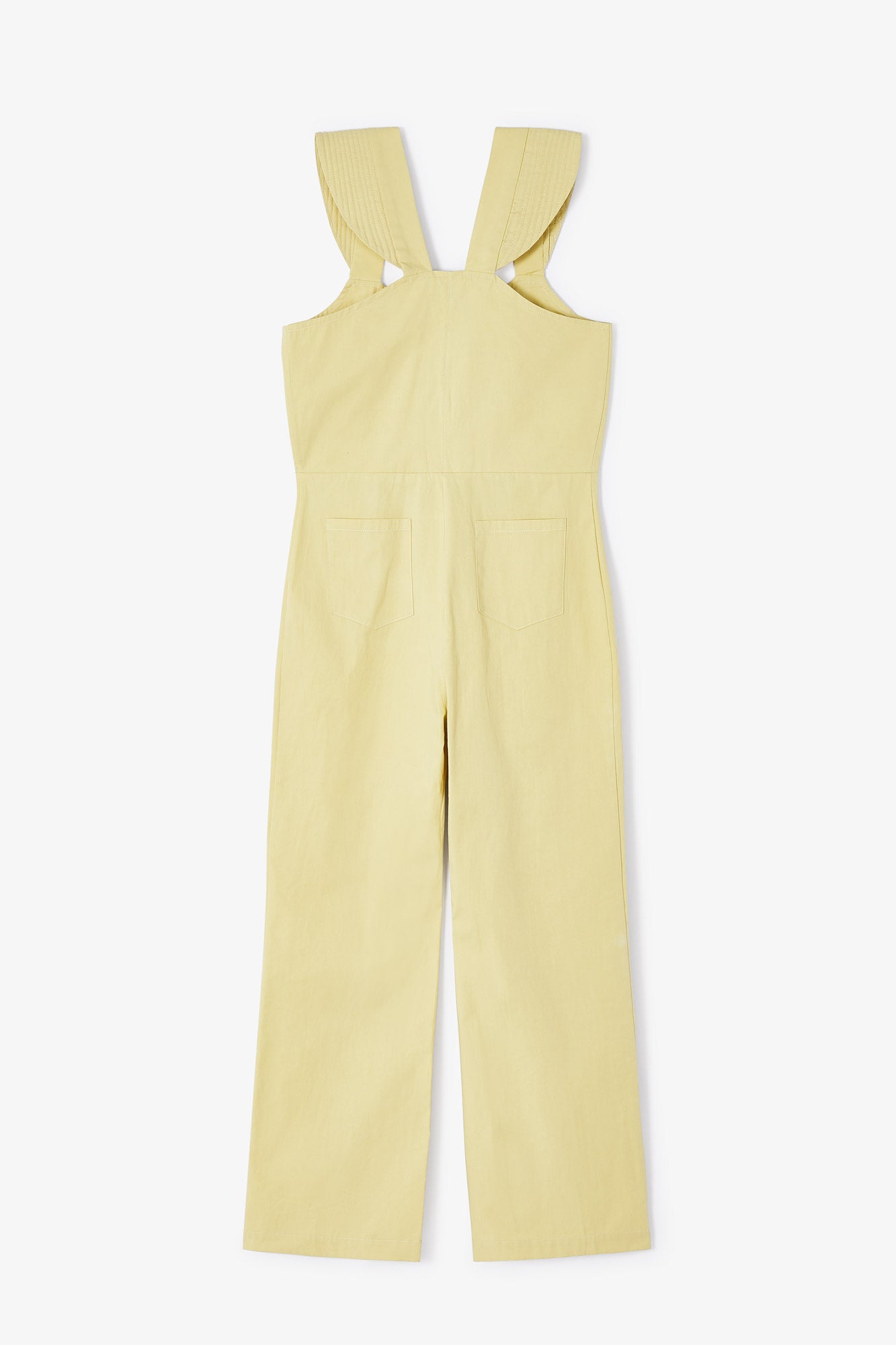 Peto confeccionado con tejido estampado 100% algodón en color natural. Pantalones con fit recto y bolsillos traseros. Los tirantes del peto son tipo anchos. Cierre en el delantero con nuestros botones más icónicos.