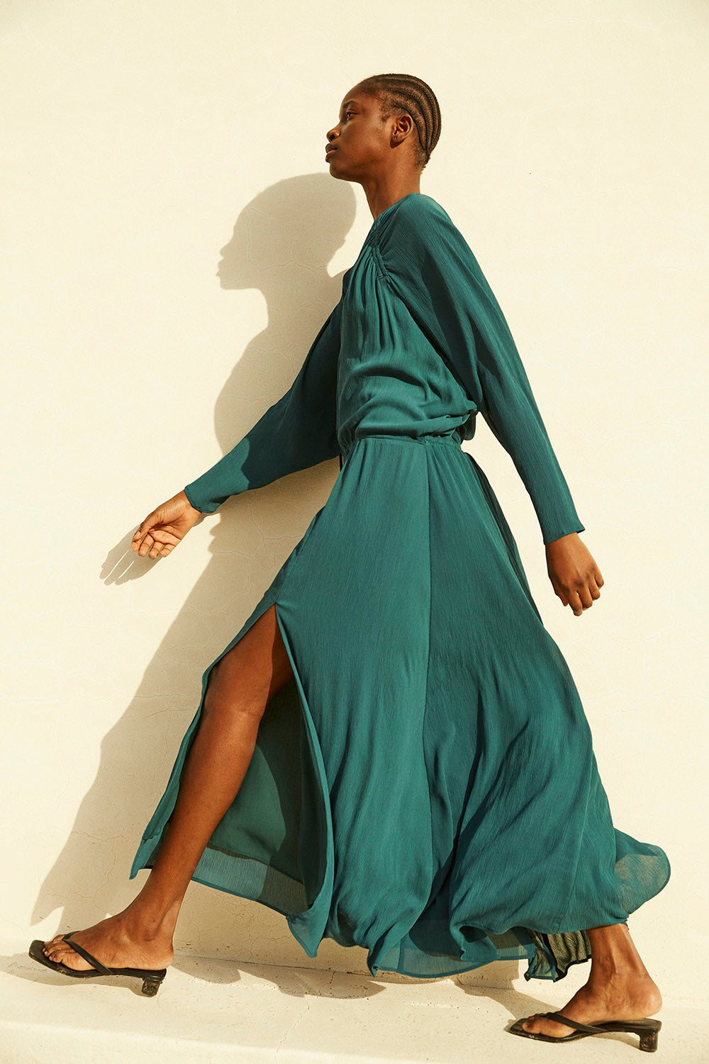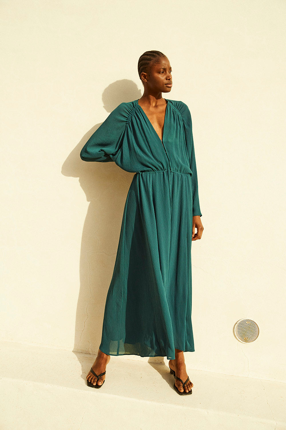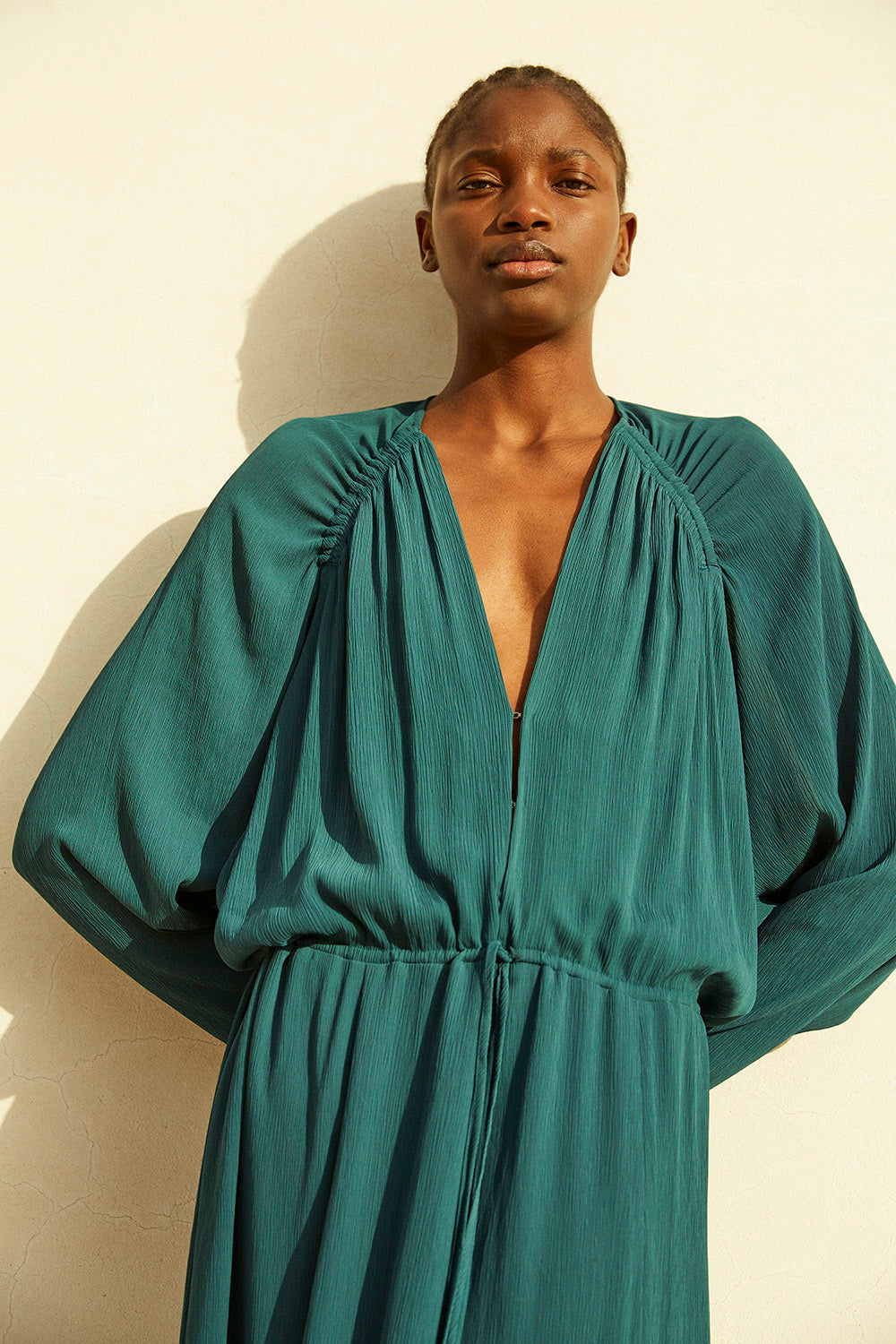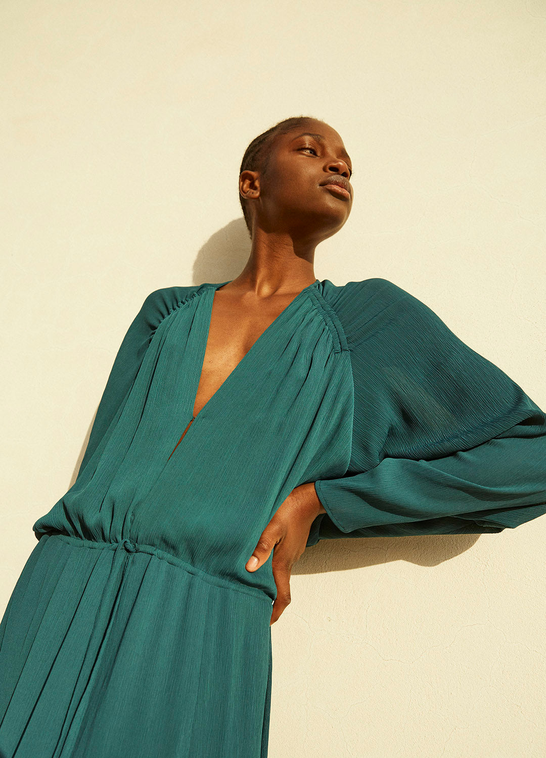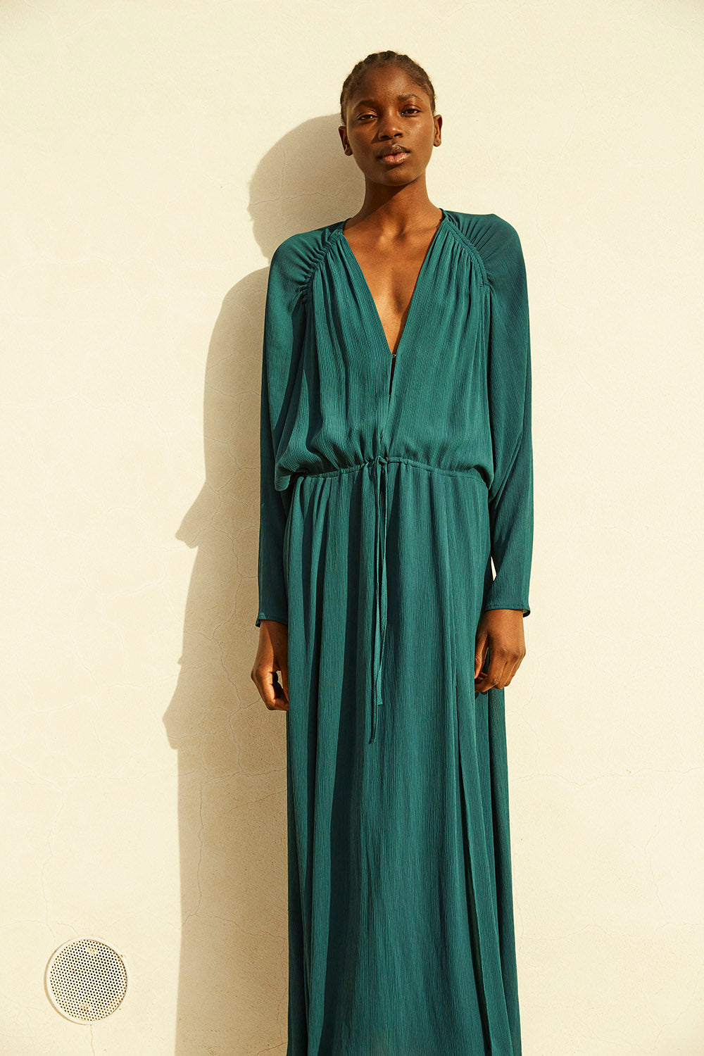 Esta temporada, a nuestra colección de invitada añadimos un vestido de gasa largo con escote en pico , detalle de lazada para ajustar en la cintura. Un vestido elegante y sencillo para cualquier ocasión.
